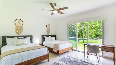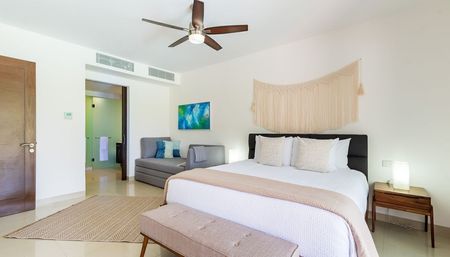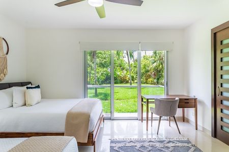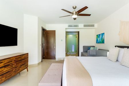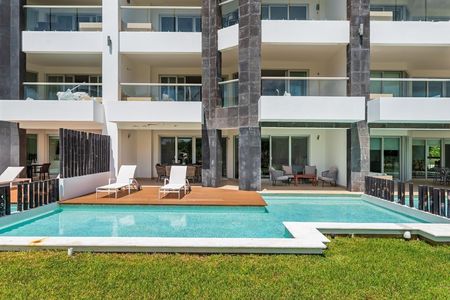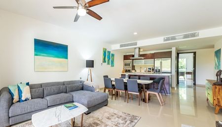 totalmente amueblado, decorado y equipado con acabados de lujo. Hermoso proyecto en la Riviera Maya que consta de amplia estancia con sala y comedor con balcón, cocina integral equipada con barras de cuarzo, 2 cómodas y bonitas recámaras con baño vestidor y salida al balcón, 1 King size, 2 queen, 1 cama canguro en master room, cuarto de servicio/lavado con baño completo y cama twin, medio baño de visitas, aires acondicionados inverter, cristales anti huracán, así como 1 estacionamiento. Cuenta con acceso a la playa, acceso al campo de golf del Grand Coral, magníficas vistas al mar y jardines, más de 200 metros de frente de playa y más de 3000 metros de albercas (infinity y con vista a la playa), espléndidas amenidades: gimnasio, bello jardín botánico con esculturas mayas, canchas de tenis y paddle, spa para hombres y mujeres, terrazas con asoleadero, restaurantes, bar, cajero automático, servicio de limpieza y más. Seguridad 24/7 y cctv. El precio de renta incluye el mantenimiento. Se entrega con todo listo, únicamente necesitas hacer tus maletas e instalarte.